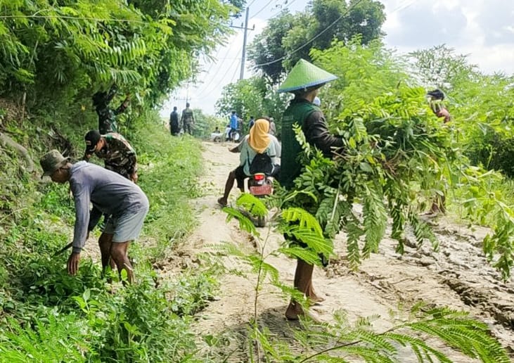 Kemanunggalan TNI dan rakyat, tak diragukan lagi. Kebersamaan dan keakraban ini, seperti yang terlihat puluhan Babinsa Kodim 0813 Bojonegoro bersama warga masyarakat Desa Napis Kecamatan Tambakrejo dalam karya bakti membersihkan kiri-kanan jalan poros desa yang akan dijadikan sasaran fisik program TNI Manunggal Membangun Desa (TMMD) ke- 120 tahun 2024, Jum’at (26/4).