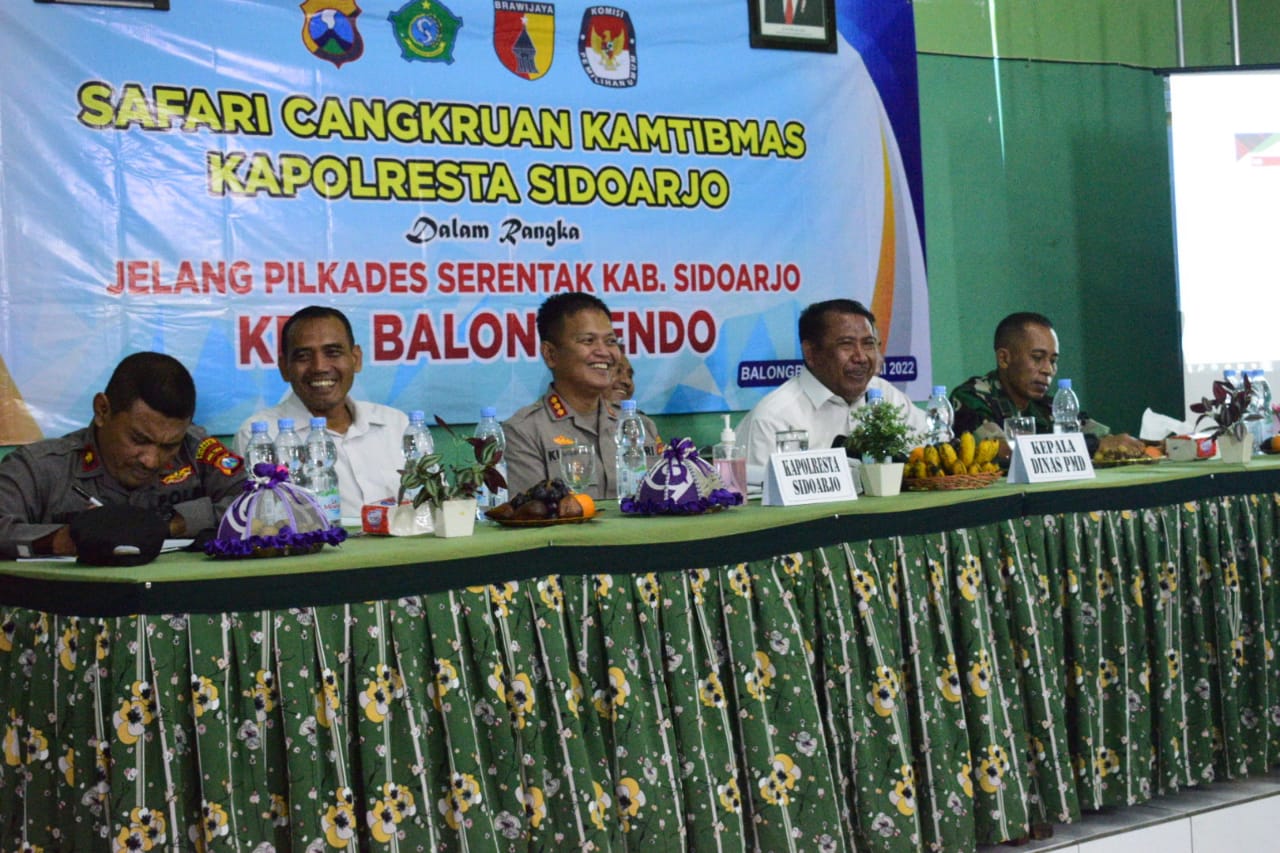“Kami akan menindak tegas bila dalam Pilkades serentak ada yang melakukan perjudian atau botoh dengan menjadikan ajang taruhan terhadap calon kades, serta jangan coba-coba ada calon kades yang melakukan money politic guna mempengaruhi pemilih,” tegas Kapolresta Sidoarjo Kombes Pol. Kusumo Wahyu Bintoro, pada kesempatan Cangkrukan Kamtibmas jelang Pilkades di Desa Suwaluh, Balongbendo, Rabu, (8/5/2022).