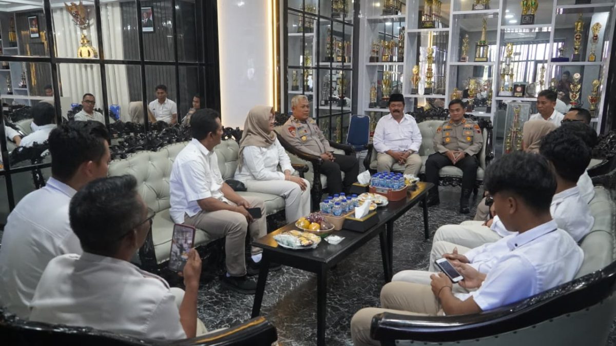 Kapolres Wonogiri AKBP Wahyu Sulistyo, S.H., S.I.K., M.P.M., menerima audiensi sekaligus silaturahmi jajaran pengurus DPC Partai Gerindra Kabupaten Wonogiri di Loby Tantya Sudhirajati Polres Wonogiri, Jumat (5/9/2025).