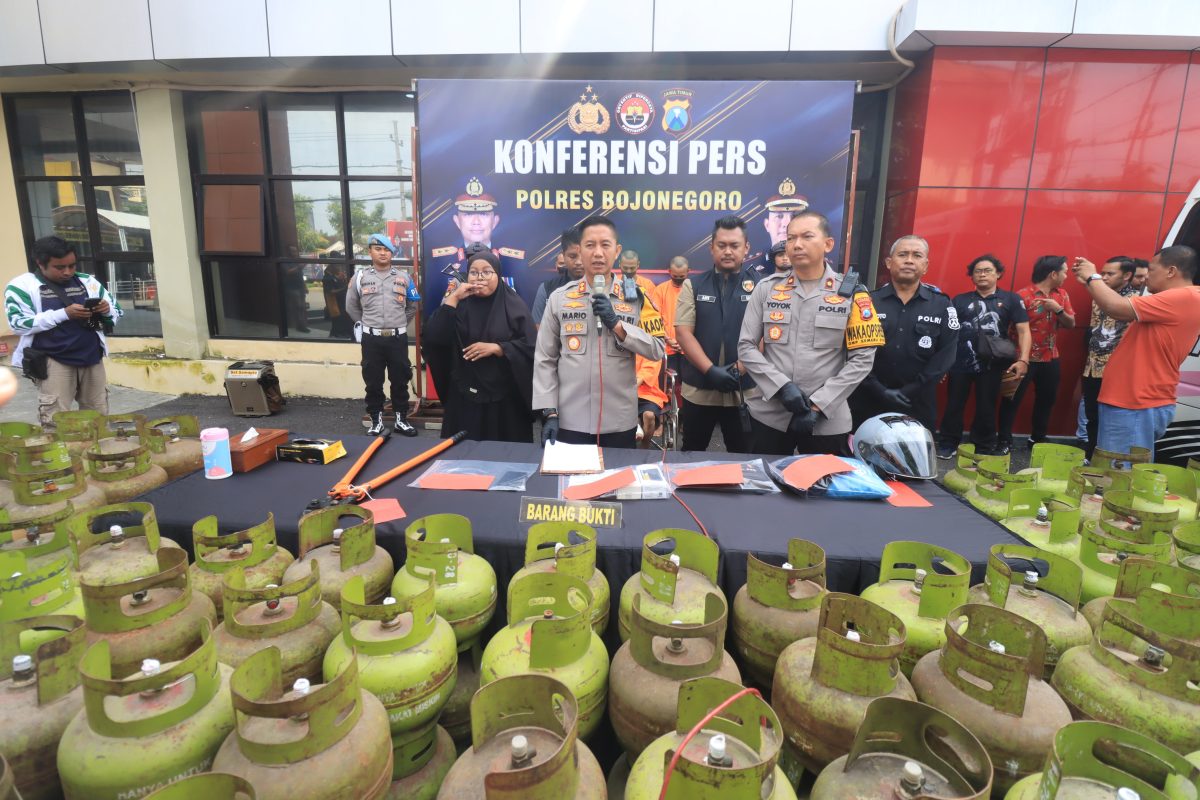Kapolres Bojonegoro, AKBP Mario Prahatinto menggelar Konferensi Pers terkait pengungkapan dua kasus Pencurian dengan pemberatan (Curat) yang terjadi di wilayah hukumnya. Dua Kasus tersebut melibatkan pencurian tabung LPG di kecamatan Ngraho dan pencurian HP serta Laptop di kelurahan Ledok Wetan, kota Bojonegoro.