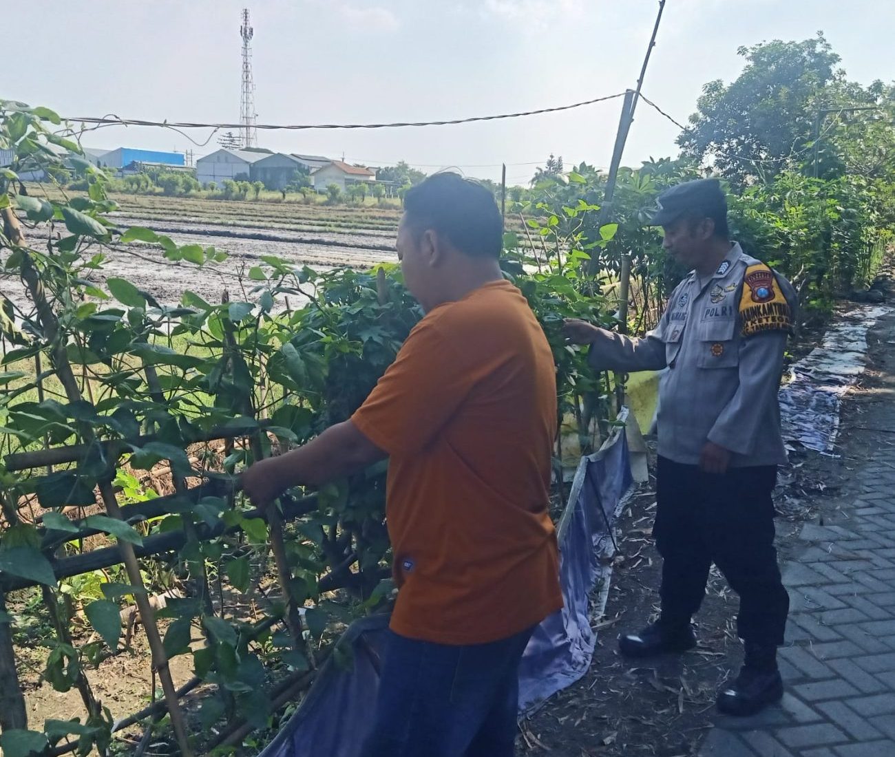 Dalam upaya mendukung program ketahanan pangan Polresta Sidoarjo Polda Jatim dan mewujudkan Asta Cita Presiden Prabowo, Bhabinkamtibmas Polsek Tanggulangin Polresta Sidoarjo, Bripka Nanang, bersama warga Desa Ketegan melaksanakan kegiatan pemeliharaan dan perawatan lahan pekarangan yang ditanami kacang panjang, Sabtu (31/05/2025).
