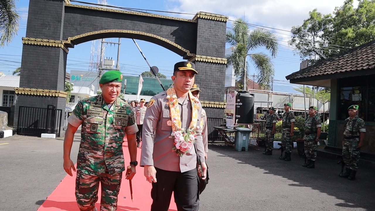 Sinergitas kebersamaan TNI Polri di Kabupaten Jember sangat solid hubungannya, ini tampak dari Dandim 0824 Letkol Inf Rahmat Cahyo Dinarso menggelar Tradisi Sambut dan Lepas Kapolres Jember yang ditempatkan di halaman Makodim 0824 Jember, Sabtu (13/05/2023)