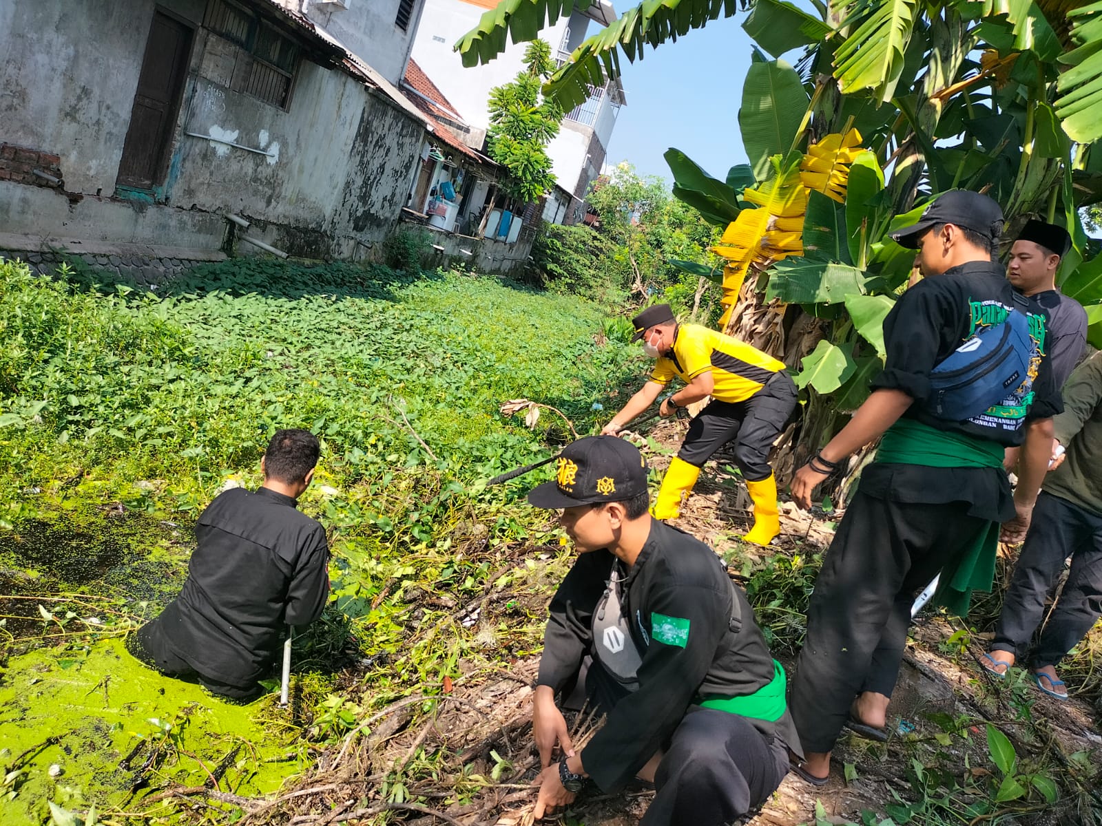 Minggu (18/12/2022), Perangkat Desa, TNI-Polri, bersama Paguyuban Silat yang ada di Kecamatan Tanggulangin, Kabupaten Sidoarjo melaksanakan kerja bakti menjelang musim hujan.