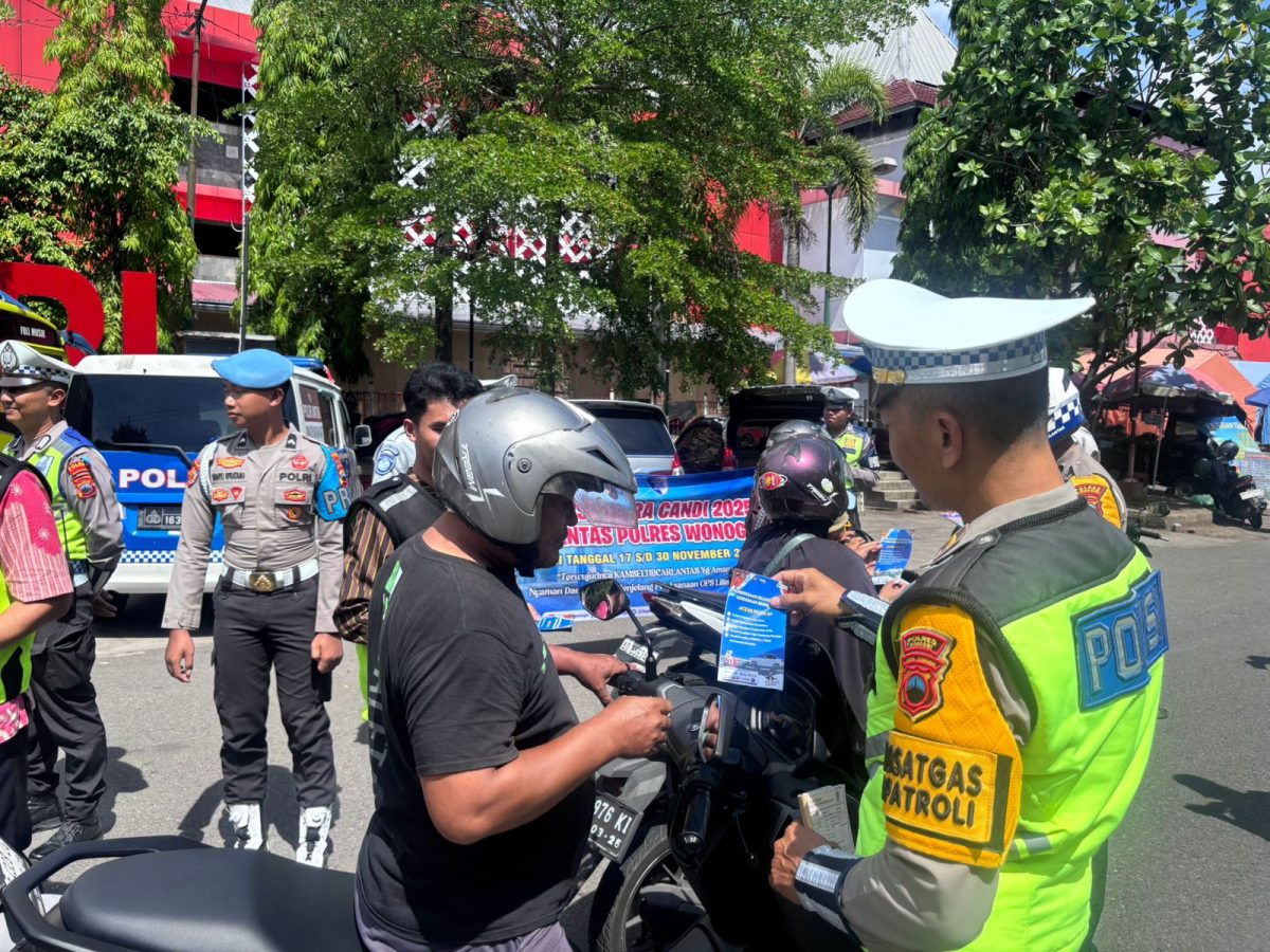 Satlantas Polres Wonogiri menggelar sosialisasi Ops Zebra Candi 2025 dan edukasi Wajib Pajak Kendaraan Bermotor di Pasar Wonogiri Kota, Kamis (20/11/2025). Kegiatan berlangsung pukul 10.00–11.00 WIB dengan melibatkan personel Satgas Ops Zebra Candi 2025, Jasa Raharja Wonogiri, serta UPPD Wonogiri.