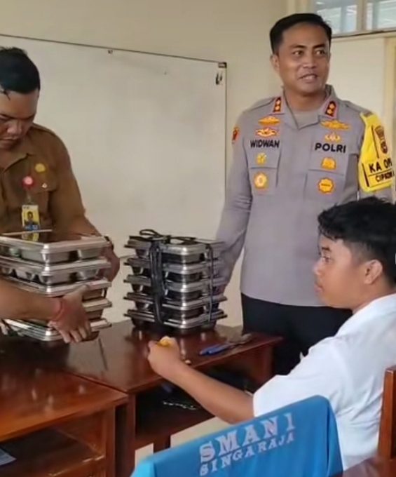 Dalam peresmian tersebut, Kapolres juga menyalurkan paket Makan Bergizi Gratis ( MBG ) kepada siswa di SMA 1 Singaraja.