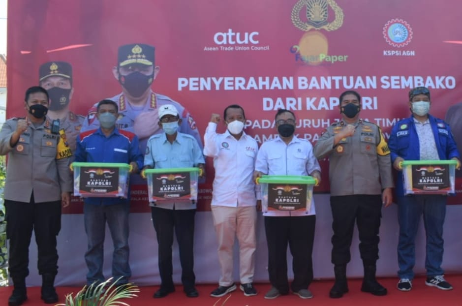 “Dua tahun kita berhadapan dengan Covid-19, tentunya mengakibatkan bermacam dampak bagi masyarakat. Seperti perekonomian bahkan tidak sedikit masyarakat terhenti pekerjaannya. Sebab itu, Polri memberikan bantuan paket sembako agar dapat meringankan beban yang dialami, termasuk oleh buruh,” jelasnya.
