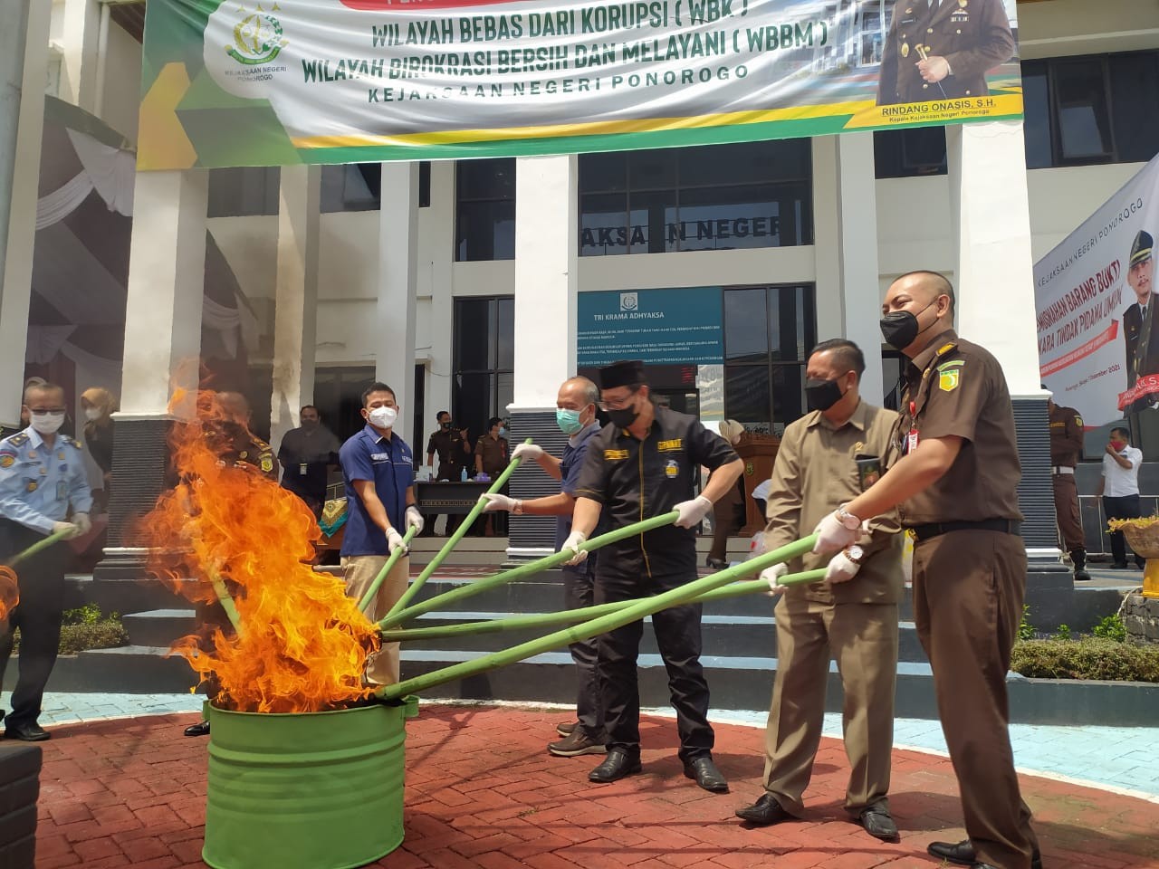 Memasuki akhir tahun 2021, Kejaksaan Negeri (Kejari) Kabupaten Ponorogo melakukan pemusnahan barang bukti kasus pidana. Barang bukti yang dimusnahkan itu terjadi selama tahun 2021.