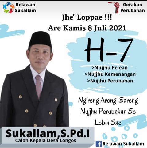 SUKALLAM S.Pd.I merupakan putra daerah asli longos kecamatan Gapura, kabupaten Sumenep, Madura. sejak beberapa hari melalui visi dan misi yang telah dikonsep dalam sebuah program, dia bertekad mencalonkan diri dalam kontestasi pemilihan kepala desa, (pilkades) di desa longos, kecamatan Gapura, kabupaten sumenep.