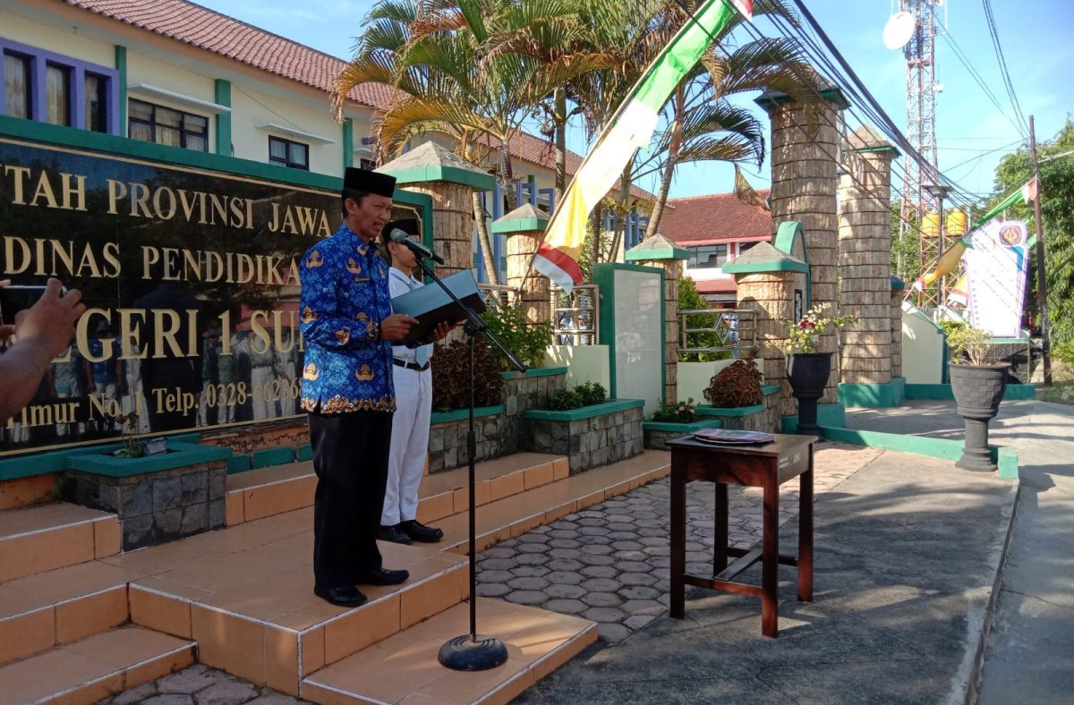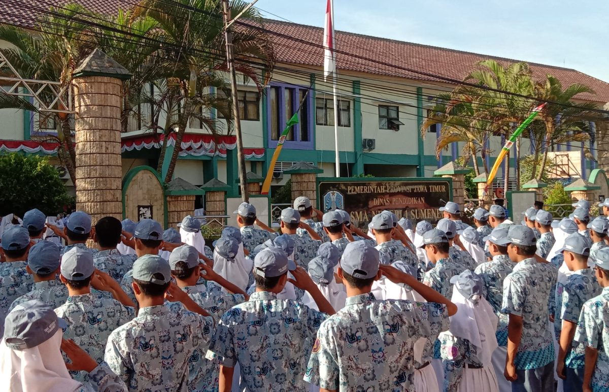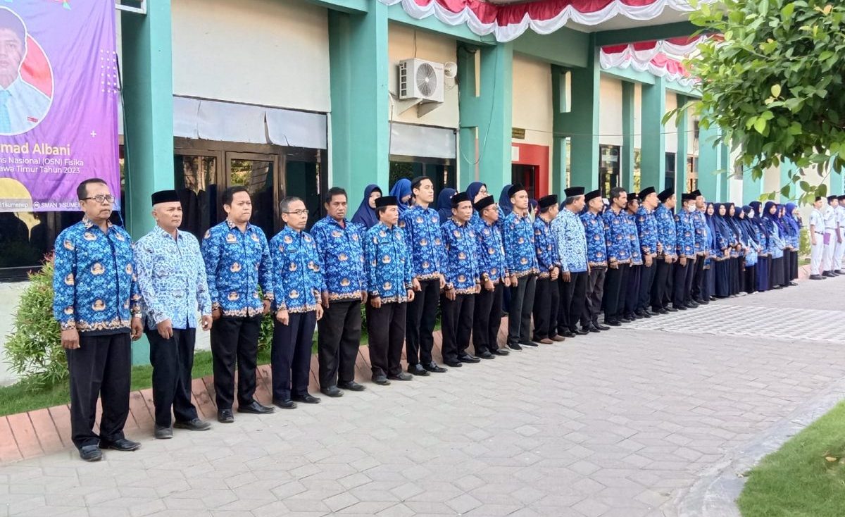 Seluruh staf dan jajaran guru juga murit SMA Negeri 1 Sumenep ikuti upacara bendera merah putih pada hari ulang tahun (HUT) Indonesia yang ke 78 tahun di depan sekolah SMAN 1 Sumenep.