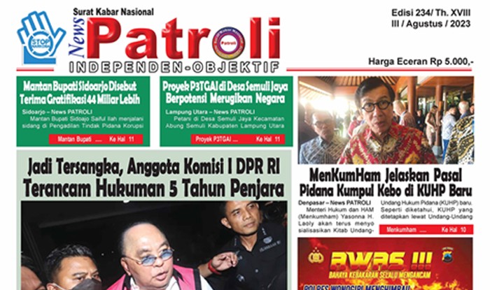 E-KORAN Surat Kabar News Patroli Edisi 234Redaksi21 Agustus 202322 Agustus 2023 Dilihat: 3,022 KomentarBaca JugaSurat Kabar News Patroli Edisi – 239Surat Kabar News Patroli Edisi – 238Surat Kabar News Patroli Edisi 237Surat Kabar News Patroli Edisi 236Surat Kabar News Patroli Edisi 235Rekomendasi untuk kamuSurat Kabar News Patroli Edisi – 239Dilihat: 1,492 Surat Kabar News Patroli Edisi – 238Dilihat: 1,696 Surat Kabar News Patroli Edisi 237Dilihat: 1,841 Surat Kabar News Patroli Edisi 236Dilihat: 6,001 Surat Kabar News Patroli Edisi 235Dilihat: 2,666 Surat Kabar News Patroli Edisi 233Dilihat: 3,066
