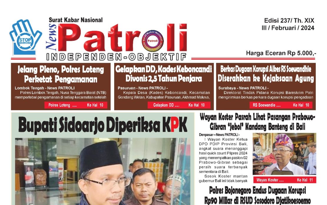 E-KORAN Surat Kabar News Patroli Edisi 237Redaksi22 Februari 202422 Februari 2024 Dilihat: 2,801 KomentarBaca JugaSurat Kabar News Patroli Edisi – 239Surat Kabar News Patroli Edisi – 238Surat Kabar News Patroli Edisi 236Surat Kabar News Patroli Edisi 235Surat Kabar News Patroli Edisi 234Rekomendasi untuk kamuSurat Kabar News Patroli Edisi – 239Dilihat: 2,522 Surat Kabar News Patroli Edisi – 238Dilihat: 2,672 Surat Kabar News Patroli Edisi 236Dilihat: 6,603 Surat Kabar News Patroli Edisi 235Dilihat: 2,762 Surat Kabar News Patroli Edisi 234Dilihat: 3,088 Surat Kabar News Patroli Edisi 233Dilihat: 3,135