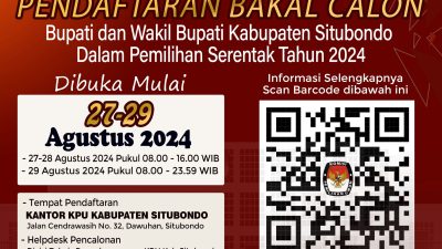 Situbondo – News PATROLI.COM – Komisi Pemilihan Umum (KPU) Kabupaten Situbondo melaksanakan tahapan pendaftaran bagi pasangan bakal calon Bupati dan…