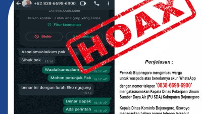 Bojonegoro – NewsPATROLI.COM – Pemkab Bojonegoro mengimbau warga untuk waspada atas beredarnya akun WhatsApp yang mengatasnamakan Kepala Dinas Pekerjaan Umum…