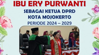 Dinas Pendidikan dan Kebudayaan Kota Mojokerto Mengucapkan, “Selamat & Sukses Atas Pelantikan Sumpah Jabatan Ibu Ery Purwanti sebagai Ketua DPRD Kota Mojokerto”