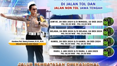 Semarang – News PATROLi.COM – Sebagai bagian dari upaya menjamin kelancaran lalu lintas selama periode libur Natal 2024 dan Tahun…