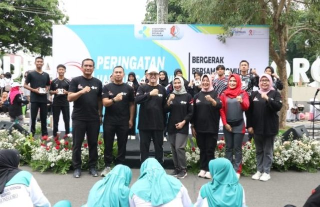 Selaras dengan semangat mengolahragakan masyarakat, peringatan Hari AIDS Sedunia di Kab. Bojonegoro dilaksanakan bersamaan dengan minggu car free day 10/12/2023. Berbagai lintas komunitas/organisasi peduli AIDS, masyarakat, pelajar, dan mahasiswa berpartisipasi aktif. Aneka kegiatan seperti donor darah, jalan santai, senam, dan seni pertunjukan berpadu menjadi satu simbol tali pita merah.