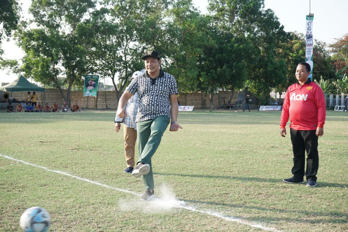 Tendangan pertama oleh Wakil Bupati Sidoarjo, Subandi menandai dimulainya Turnamen Sepak Bola PSAP CUP 1 tahun Anniversary 2023, Minggu, (19/11/2023) di Lapangan Desa Pabean , Sedati