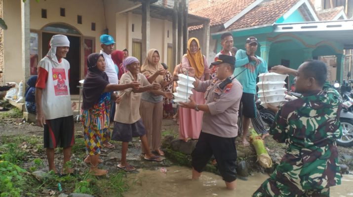 Selaian melakukan evakuasi untuk membantu masyarakat, Polsek Brebes menyalurkan bantuan ligistik makanan kepada masyarakat yang terdampak banjir.