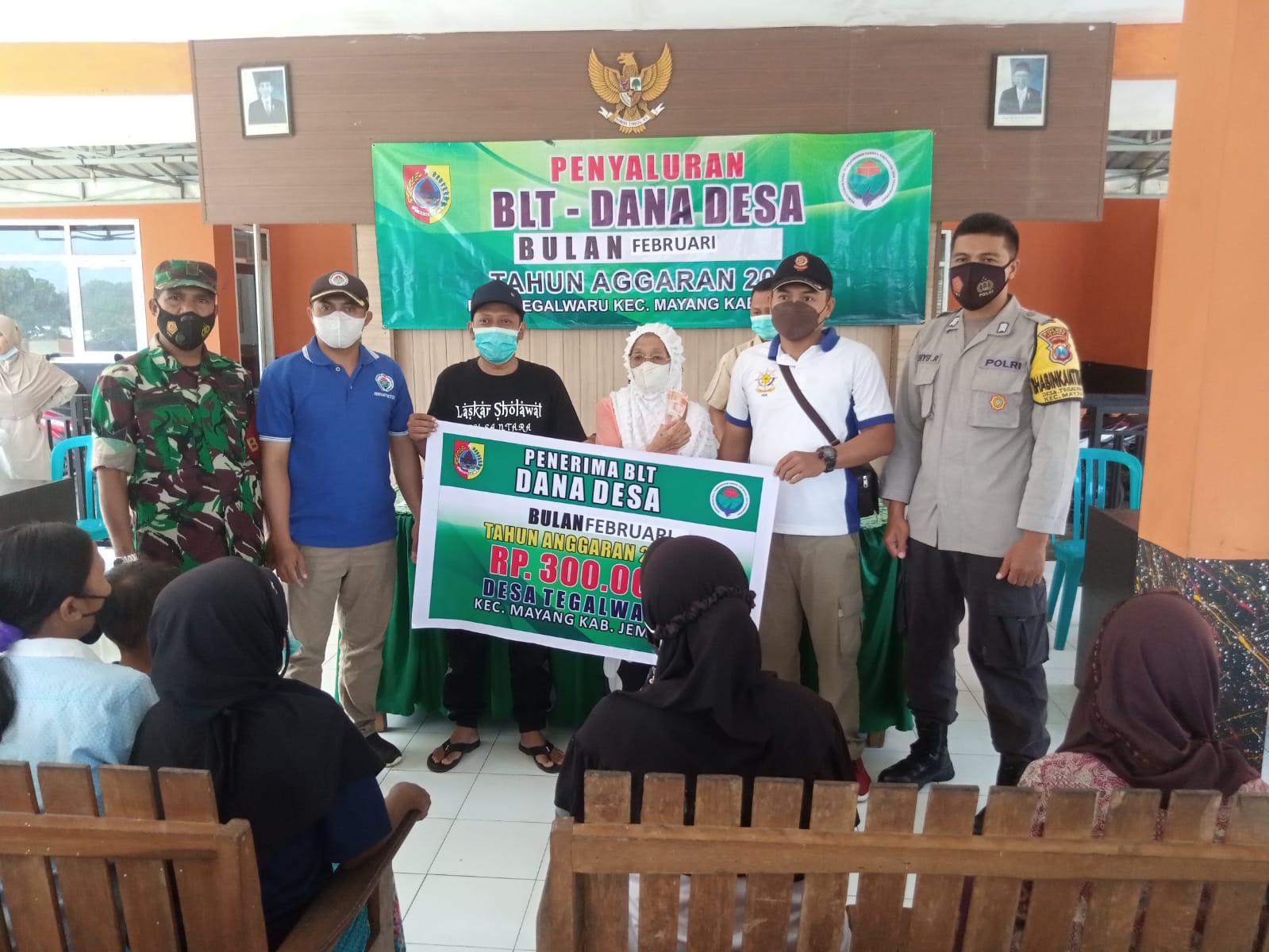Saya mewakili warga desa Tegalwaru Lainnya sangat berterimakasih atas bantuan BLT DD ini yang di berikan kepada kami 151 KPM warga desa Tegalwaru kecamatan mayang dari dusun Plalangan dan dusun lainnya Mengucapkan banyak terima kasih semoga bantuan ini menjadi amal ibadah pemerintah pusat,daerah, khusus nya kepada kepala desa kami. bapak Haryanto”, ungkapnya.