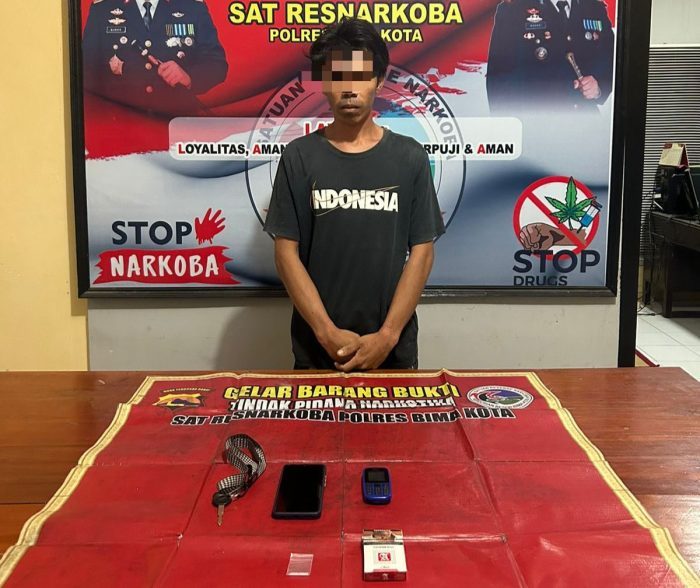 Kali ini seorang warga Kota Bima yang diduga sebagai pengguna narkoba jenis sabu, disergap bersama barang bukti sabu dan barang bukti lainya.