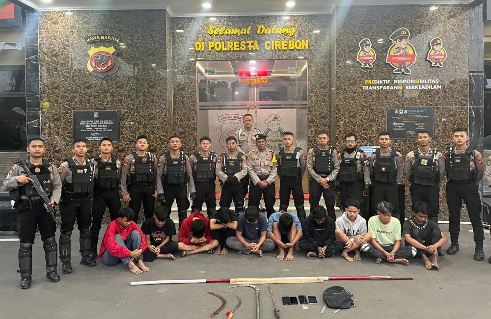 Kapolresta Cirebon, Kombes Pol Arif Budiman, S.I.K, M.H, mengatakan, Tim Raimas Macan Kumbang 852 Polresta Cirebon mengamankan 10 pemuda yang diduga hendak tawuran. Mereka berinisial MA (16), MO (17), SY (17), RA (15), MH (16), HA (16), AL (18), MU (19), ML (20), dan dan RA (19).