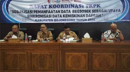 Pj Sekda Bojonegoro Djoko Lukito menekankan integrasi Data Regsosek dengan Data Mandiri Masyarakat Miskin Daerah (Damisda) untuk meningkatkan akurasi dalam intervensi program penanganan kemiskinan yang dialokasikan dari APBN, APBD maupun APBDesa. Hal itu disampaikan saat rapat Tim Koordinasi Penanggulangan Kemiskinan (TKPK) dan sosialisasi pemanfaatan data registrasi sosial ekonomi (Regsosek) di Partnership Room lt. 4 gedung Pemkab Bojonegoro, Senin (11/11/2024).