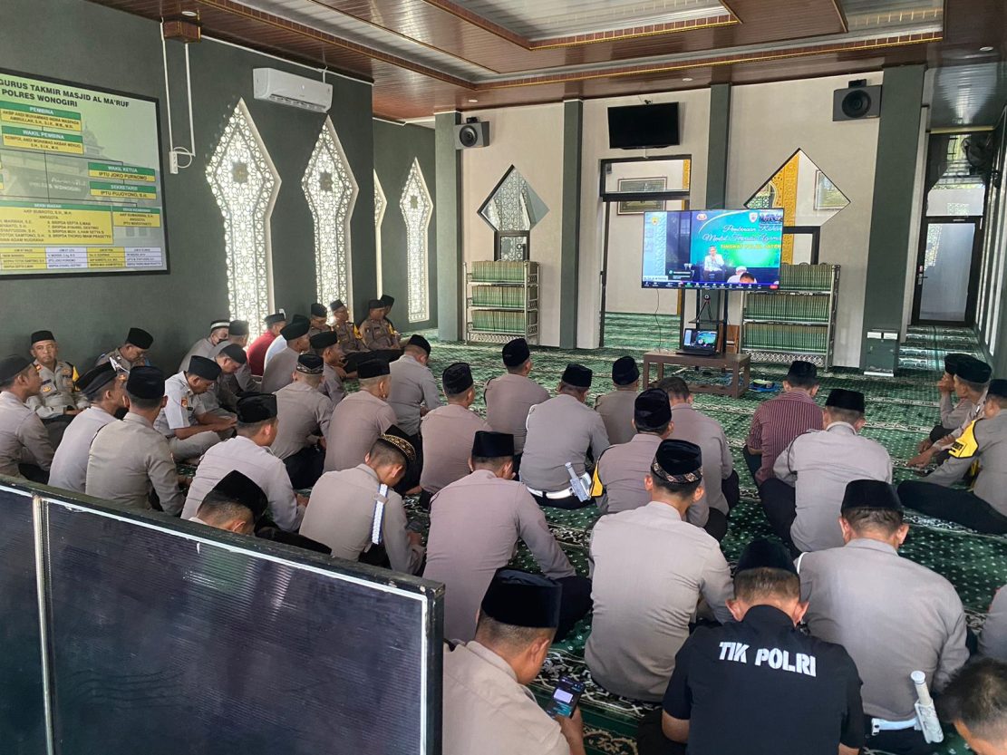 Puluhan personil Polres Wonogiri mengikuti kegiatan pembinaan rohani dan mental (Binrohtal) dari Polda Jawa Tengah melalui Zoom Meeting. Kegiatan tersebut diikuti oleh personil perwakilan dari Bag, Sat, Si yang ada di Polres Wonogiri yang beragama Islam. Kamis (4/1/2024).