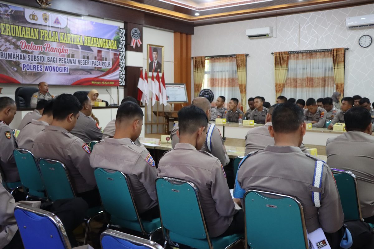 Tingkatkan kesejahteraan anggota, Polres Wonogiri lakukan sosialisasi tentang perumahan yang di peruntukan untuk Anggota Polres Wonogiri. Kegiatan yang berlangsung di Aula Sanika Satyawada Polres Wonogiri pada Rabu (16/4/2025).