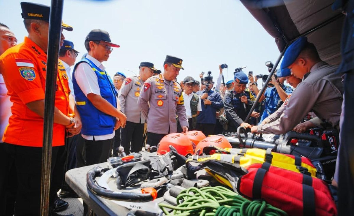 Lalu, 1 unit mobil pemadam lebakaran, 1 unit mobil derek, 1 unit mobil ambulans dan perlengkapannya, 2 unit mobil SAR Satbrimobda Banten dan perlengkapannya dan 2 unit mobil SAR Ditsamapta dan Ditpolairud Polda Banten dan perlengkapannya.