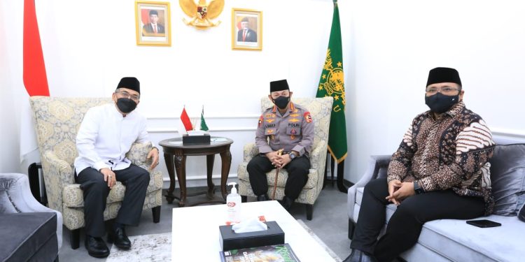 Kapolri Jenderal Listyo Sigit Prabowo bersama Ketum PBNU Yahya Cholil Staquf dan Menag Yaqut Cholil Qoumas pun turut meninjau langsung program yang dilakukan secara serentak se-Indonesia melalui kantor pusat PBNU.