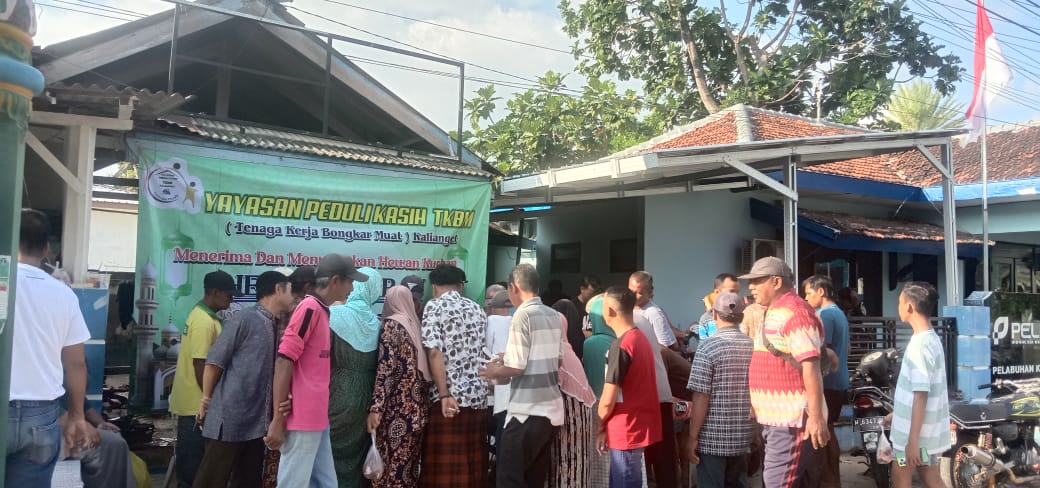 lndahnya persatuan Tenaga Kerja Bongkar Muat (TKBM) Kalianget kembali salurkan daging hewan kurban pada 10 Dzulhijjah 1445 H, di sekitar Desa Kalianget timur sebar 350 kupon Senin, (17/06/2024).
