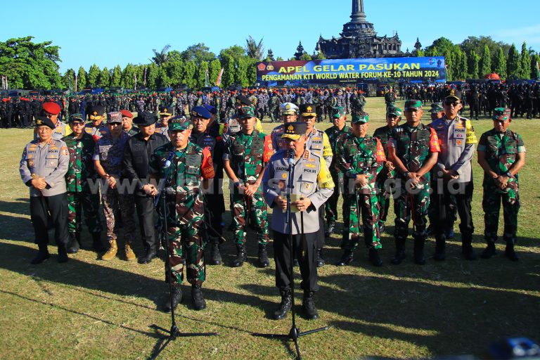 TNI-Polri menyelenggarakan Apel Gelar Pasukan Operasi Puri Agung 2024 dalam rangka Pengamanan World Water Forum (WWF) ke-10 di Bali. Hal ini bertujuan memastikan kesiapan pengamanan saat berlangsungnya agenda internasional itu.
