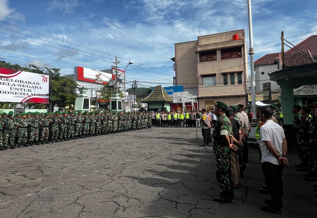 Amankan kunjungan Wakil Presiden RI, Gibran Rakabuming ke wilayah Kabupaten Wonogiri, gabungan pasukan TNI-Polri menggelar Apel Gelar Pasukan Pengamanan di halaman Kodim 0728 Wonogiri. Jumat (27/12/2024).