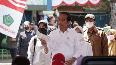 Sidoarjo, News PATROLI.COM Ratusan pedagang dan pengunjung Pasar Larangan, Kecamatan Candi, Kabupaten Sidoarjo dibuat kaget dengan kedatangan Presiden RI ke-7….
