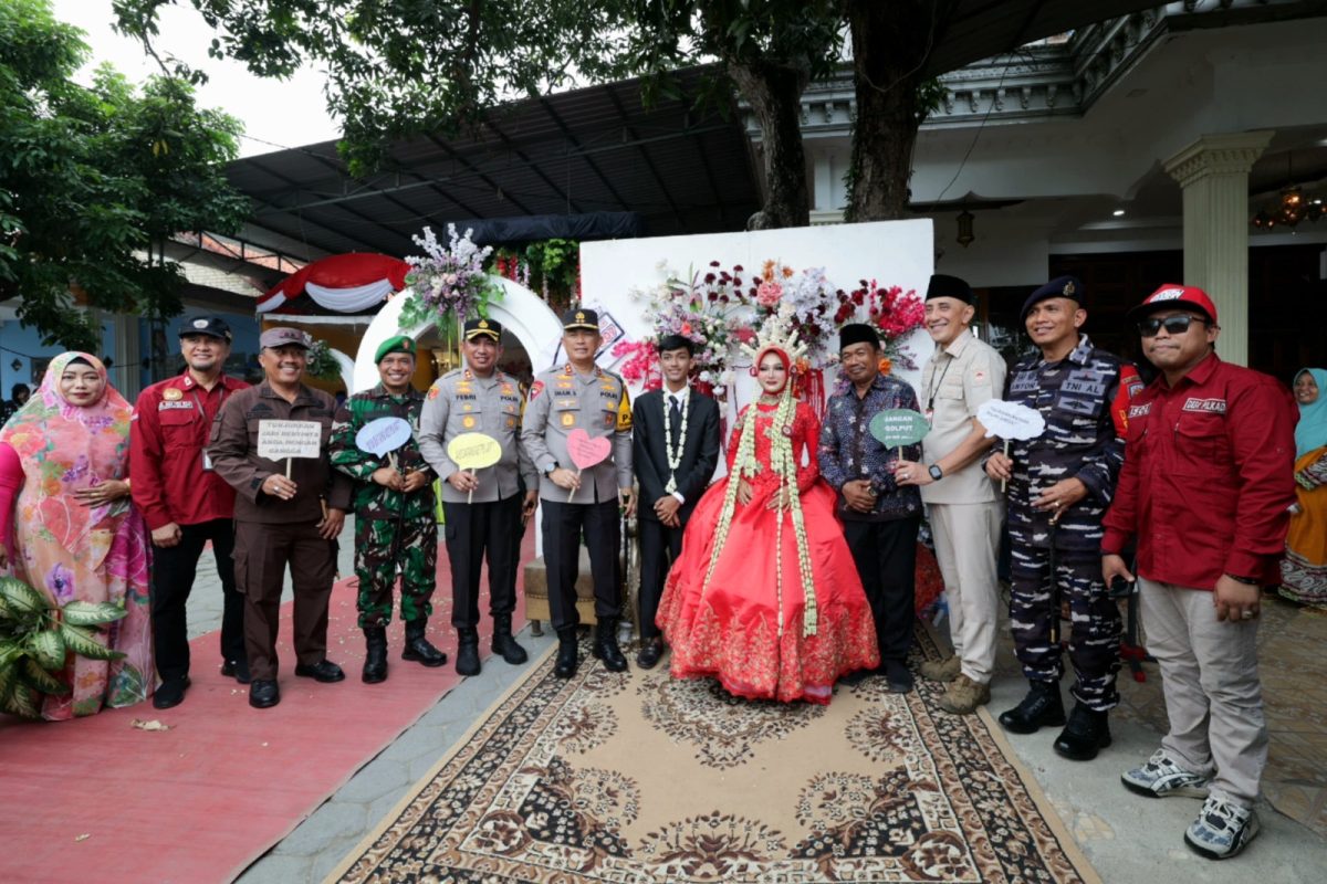 Nuansa hajatan pernikahan terasa kala Kapolda Jatim masuk ke area TPS dan disambut dengan ornamen pesta pernikahan yang meriah.