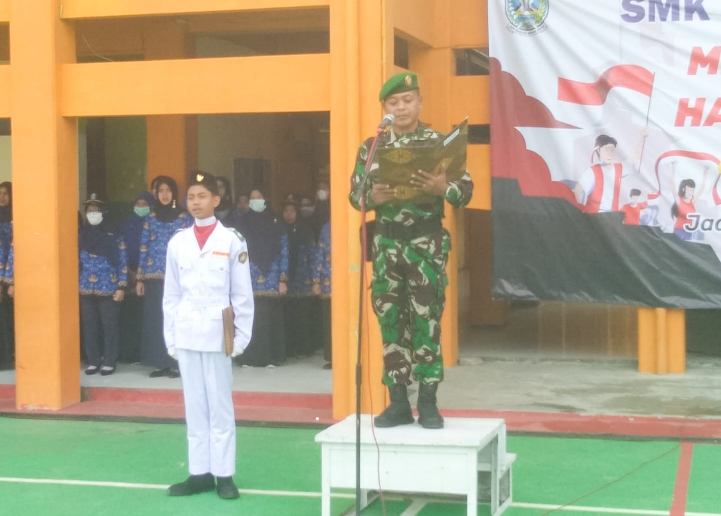 Dalam rangka menumbuhkan jiwa nasionalisme cinta tanah air dan patriotisme, jajaran TNI Kodim 0813 Bojonegoro serentak menjadi Inspektur Upacara (Irup) pada pelaksanaan upacara bendera dalam rangka peringatan Hari Pahlawan ke- 77 tahun 2022 di SMAN/SMKN se- Kabupaten Bojonegoro, Senin (7/11/2022) pagi.