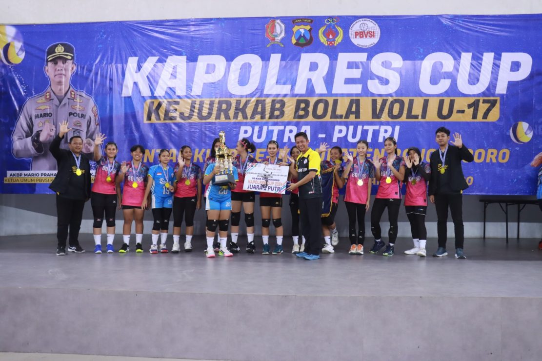 Kejuaraan bola voli antar klub U -17 putra dan putri tingkat Kabupaten Bojonegoro “Kapolres Cup 2024“ ini telah berakhir dan ditutup sekaligus penyerahan trophy oleh Kapolres Bojonegoro, AKBP Mario Prahatinto, SH, SIK, M.Si, bertempat di Gelanggang Olah Raga (GOR) Bojonegoro Desa Ngumpakdalem Kecamatan Dander Kabupaten Bojonegoro, Sabtu (27/4/2024) pukul 23.30 WIB.