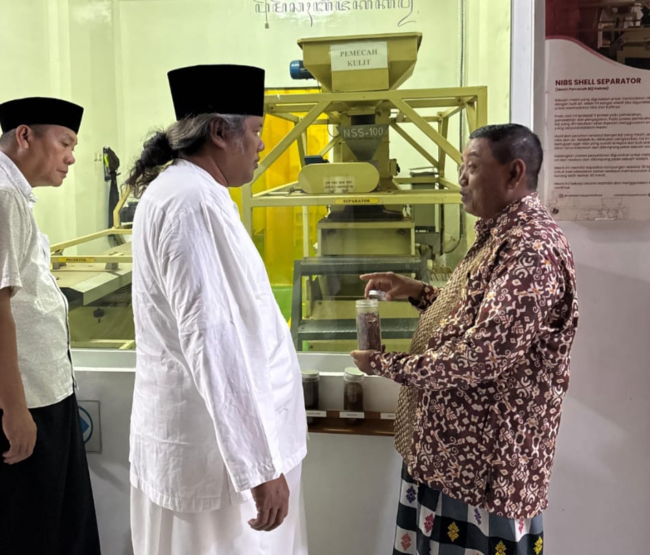 Gus Muwafiq Didampingi Ki Mulyono SH saat melihat langsung pengelolaan di Pabrik Cokelat Mojopahit Mojokerto