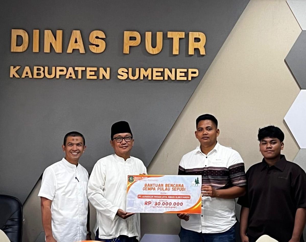 Penyaluran bantuan dari PT. Sumekar Indah Jaya Abadi ini, diserahkan langsung oleh Manager Marketing H.Muhammad Umar Faruk bersama Andika di Dinas PUTR kabupaten Sumenep.