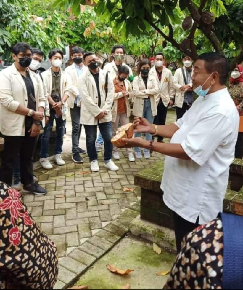 Di lokasi pabrik Cokelat Majapahit Mojokerto ini, Para Mahasiswa Wijaya Kusuma Surabaya ini mendapat penjelasan dari Ketua Gapoktan Mulyo Jati Mojopahit Mojokerto yang juga Direktur Wisata Desa BMJ Majapahit Mojokerto Ki Mulyono, mulai dari proses tanam pohon Kakao, sampai merawat , memanen dan menjual hasil panennya hingga pada proses pengelolaan di pabrik Cokelat Mojopahit sampai menjadi adonan yang kemudian dikemas dan di Gelery Cokelat Mojopahit yang siap dinikmati oleh masyarakat luas.