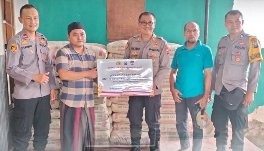 Melalui Kapolsek Boyolangu AKP Tri Nuartiko, S.H. didampingi Wakapolsek Boyolangu IPDA Purwo Harjito, SE., PS. Kasium Polsek Boyolangu AIPDA Andik Dwi Hartoyo dan Bhabinkamtibmas Desa Karangrejo AIPTU Agus Yudi Witoro, SH., menyerahkan 100 Sak semen yang langsung diterima oleh Pimpinan Ponpes Nurul Qur’an Ustadz Muhammad Ubaidillah Asyifa’i. Dalam penyerahan juga Turut hadir Kades Karangrejo Dwi Agus Prasetyo, SPd., MM., Sabtu (06/05/2023).