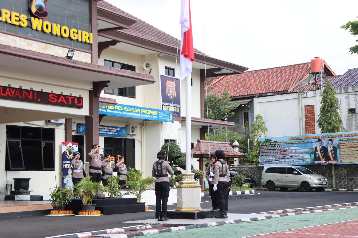 Yang menarik perhatian adalah kehadiran Polwan Polres Wonogiri yang tampil sebagai petugas upacara.