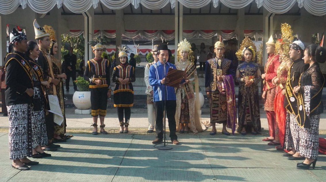 Suasana upacara semakin khidmat saat pembacaan teks putusan Kongres Pemuda Indonesia oleh kelompok Bhinneka Tunggal Ika.