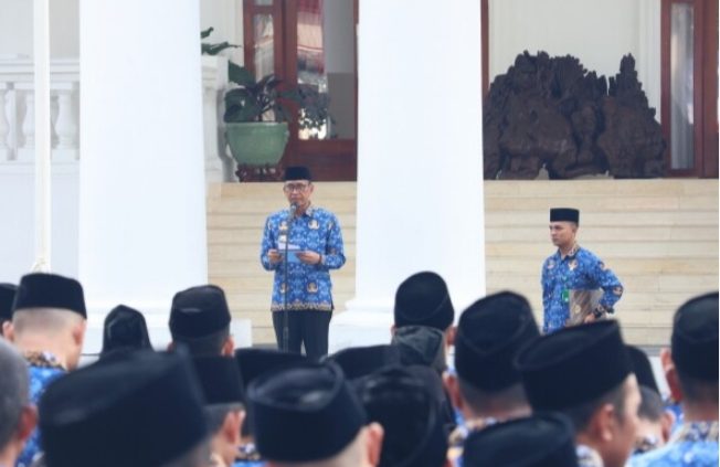 Pada kesempatan tersebut, Bupati Bojonegoro Setyo Wahono sebagai inspektur upacara membacakan pidato Menteri Pemuda dan Olahraga Republik Indonesia Erick Thohir.