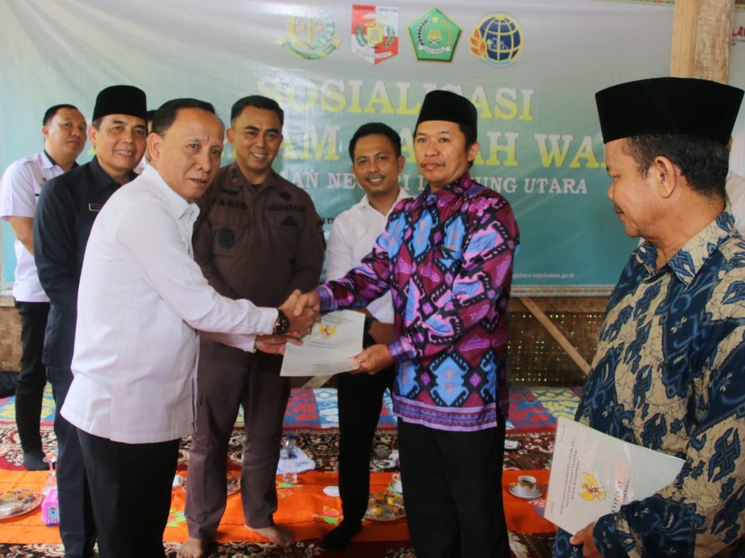 Sosialisasi program jaksa garda desa ini berlangsung di pondok Taman Wisata Grand Bambu Desa Sri Bandung, Kecamatan Abung Tengah, Kabupaten Lampung Utara.