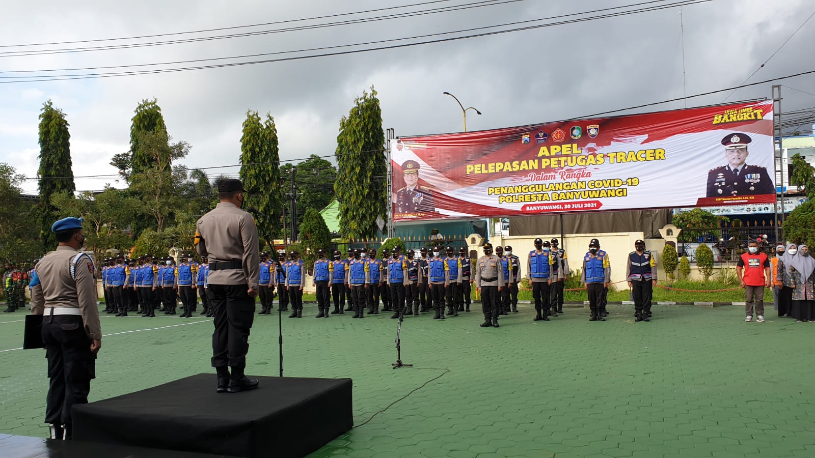 Pembentukan team tracer tersebut diawali apel pelepasan petugas tracer yang dipimpin Kapolresta Banyuwangi AKBP Nasrun Pasaribu bersama Forkopimda, pejabat utama Polresta Banyuwangi, tim dinas kesehatan Kabupaten Banyuwangi, Bhabinkamtibmas, Babinsa, relawan dari GP Ansor, Pemuda Muhammadyah dan Senkom di lapangan apel Mapolresta Banyuwangi, Jumat pagi (30/7).