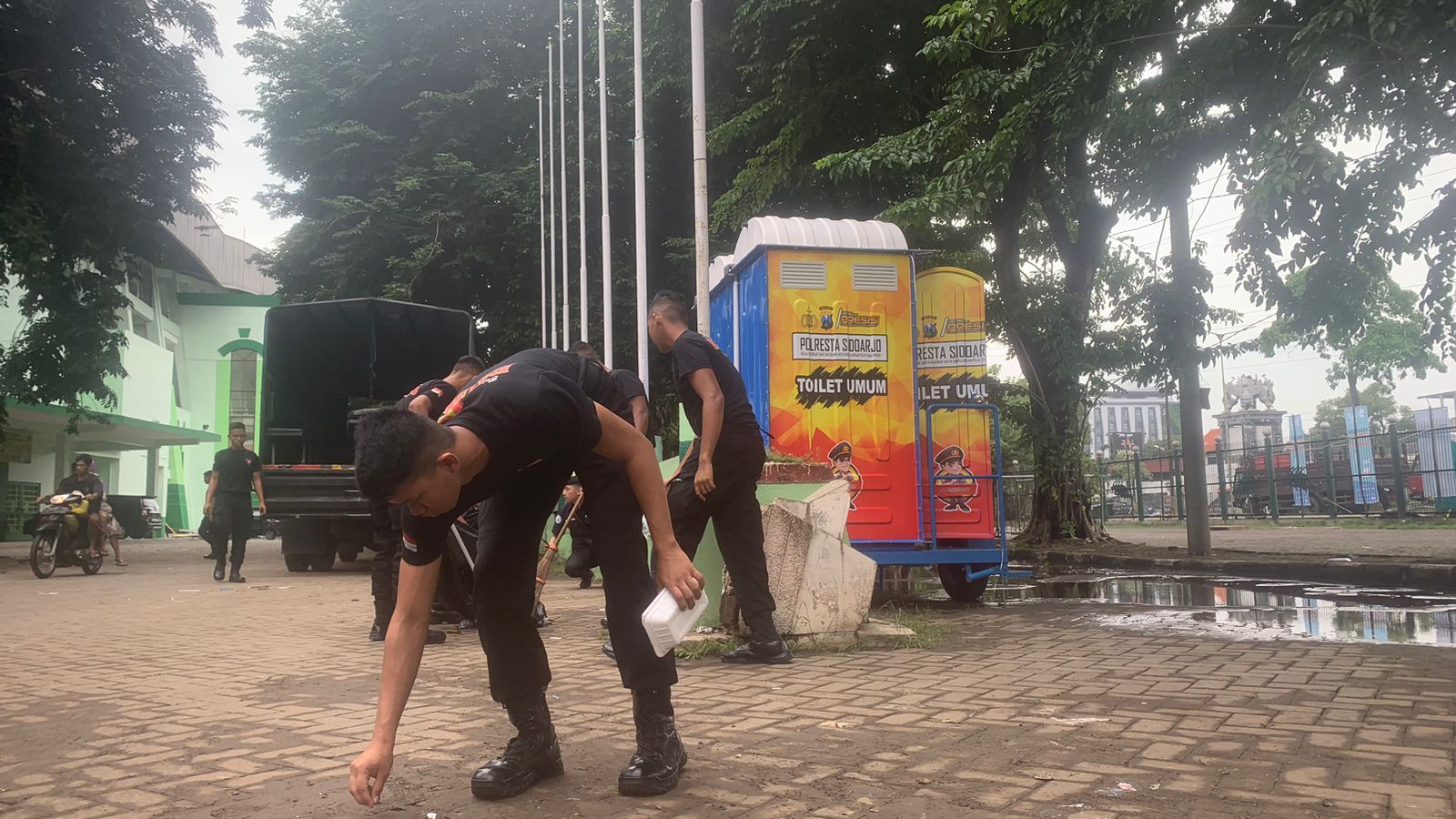 Usai Harlah Satu Abad NU, Polisi Turut Bersihkan Kawasan GOR Sidoarjo
