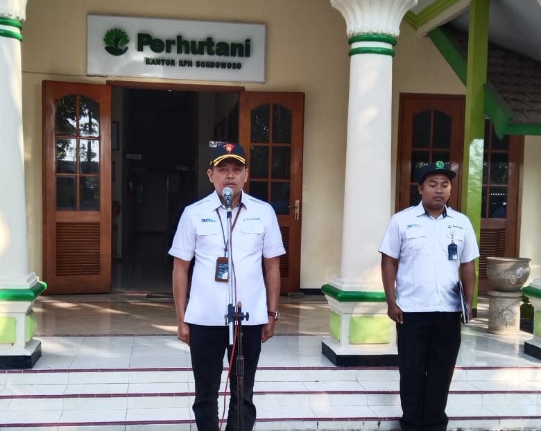 Usai Sertijab dan Pisah Sambut, Administratur Perum Perhutani KPH Bondowoso Pimpin Apel Pagi