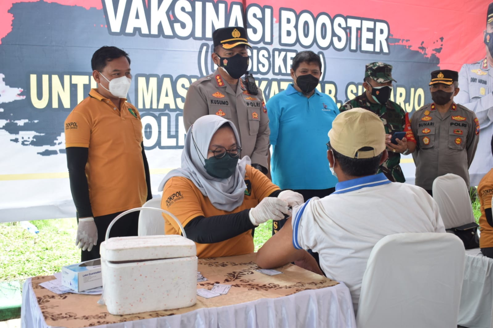 Paelaksanaan vaksinasi dosis ketiga (booster) terus dimasifkan Polresta Sidoarjo bersama instansi terkait. Kali ini menyasar wilayah perumahan.