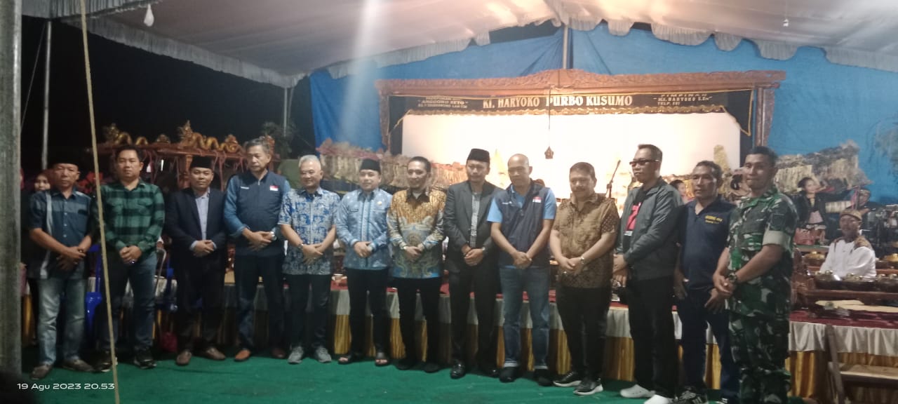 Wakil Bupati Lampung Utara, Ardian Saputra menghadiri kegiatan Wayang Kulit dari Padepokan Anggono Seto dari Lampung Timur yang didalangi Ki Haryoko Purbo Kusumo di Desa Rejo Mulyo Kecamatan Abung Timur, Sabtu (19/08/2023).